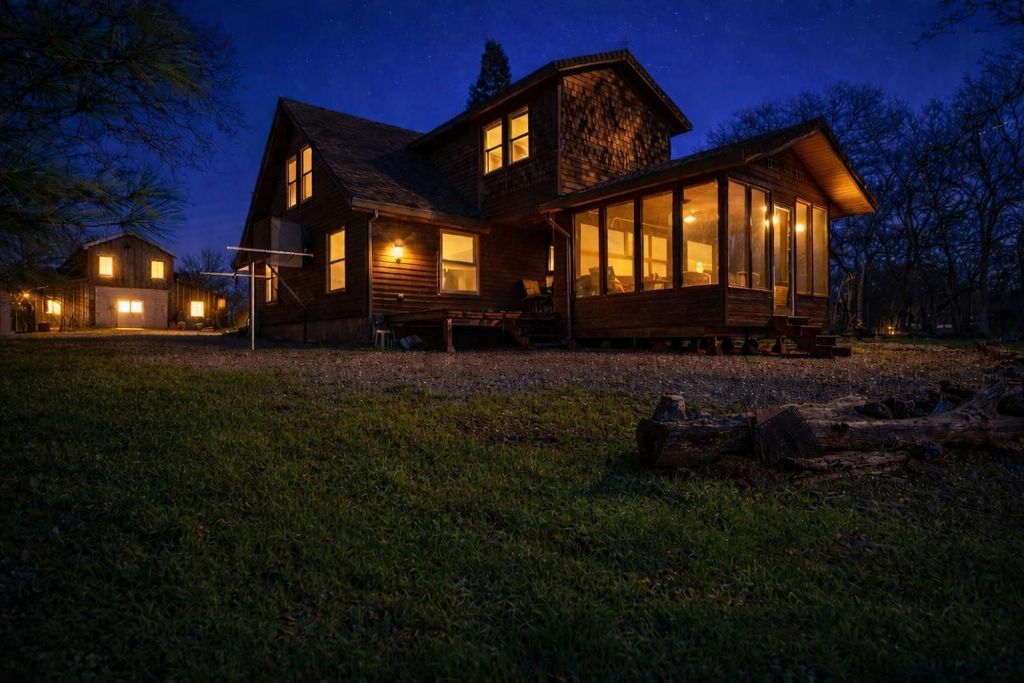 End-of-the-Road Privacy Just Minutes to Town! Welcome to your private Northern California homestead set on mostly fenced 10 usable acres, offering room to roam, tinker, garden, and enjoy true country living, all just approximately 10 minutes from town. This charming custom, owner-built ranch-style home features 3 bedrooms, 2 bathrooms, and 1,750 sq ft of thoughtfully designed living space. An open floor plan showcases soaring ceilings with custom-milled crown molding, a hand-welded, one-of-a-kind kitchen light fixture, abundant cabinetry, and a welcoming living area anchored by a woodstove with beautiful, hand-picked rock back mantle-perfect for cozy evenings. Every detail was carefully planned, and the home has been well maintained. Dual-pane windows add energy efficiency throughout. Relax with a book and coffee in the large screened-in patio with ceiling fan, or enjoy evenings gathered around the outdoor firepit, roasting s'mores while gazing at brilliant star-filled night skies. A connecting covered patio off the screened porch enhances indoor-outdoor living and provides additional flexible space. The land is ideal for a self-sufficient lifestyle, featuring room for livestock and horses, a custom chicken coop for fresh eggs, and large raised garden beds with covers and irrigation already in place. A standout feature is the impressive 2-story, approximately 2,600 sq ft Barn/shop, offering a workshop area, man cave with a bathroom, 2nd floor runs the full length of the barn is an open slate waiting for future development. For the bathroom the toilet is in place and shower drain is installed providing excellent potential for future ADU or buildout (Buyer to verify). Perfect for hobbies, storage, or business use. The property also includes covered RV parking. Usable land, end-of-the-road privacy, and convenient access make this a rare opportunity. Experience the perfect blend of rural charm, functionality, and freedom - make Cottonwood, CA your next home.